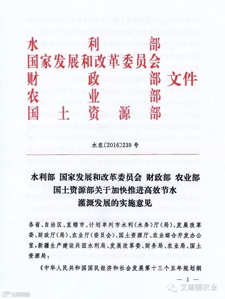 头条 | 水利部等五部委下发《关于加快推进高效节水灌溉发展的实施意见》