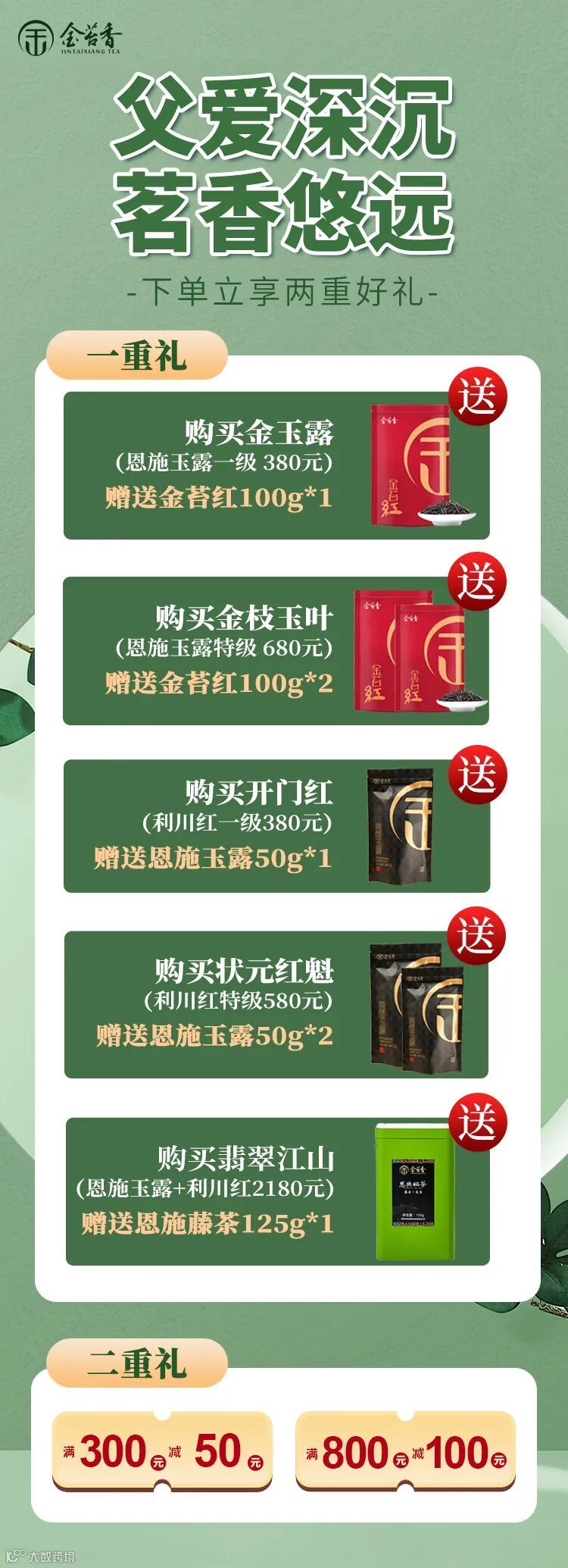 购红茶送绿茶,购绿茶送红茶,为父亲一次备齐。