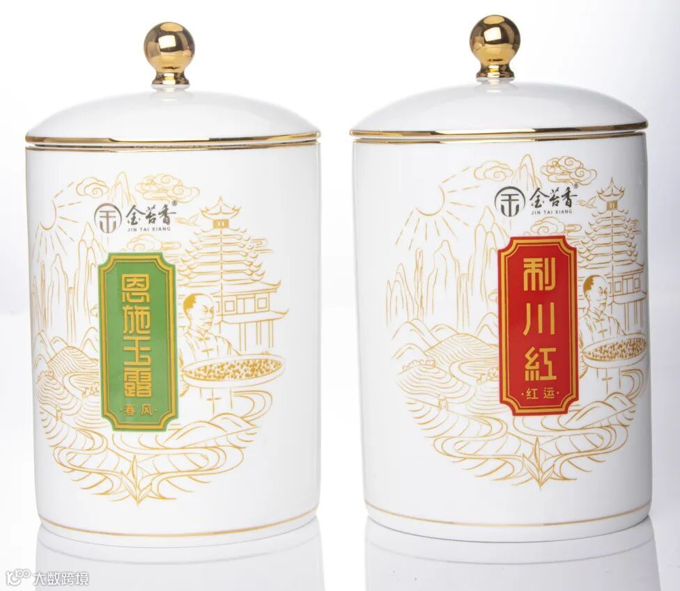 红罐盛特级头采金苔红,不染尘埃;白罐盛特级头采恩施玉露,温润静谧。