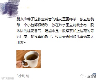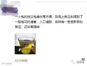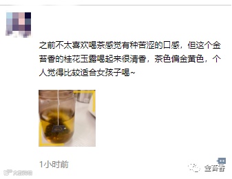 清新的茶香正好配搭浓郁的桂花香,谁也不抢味。两种味道像扭在一起又像独立。