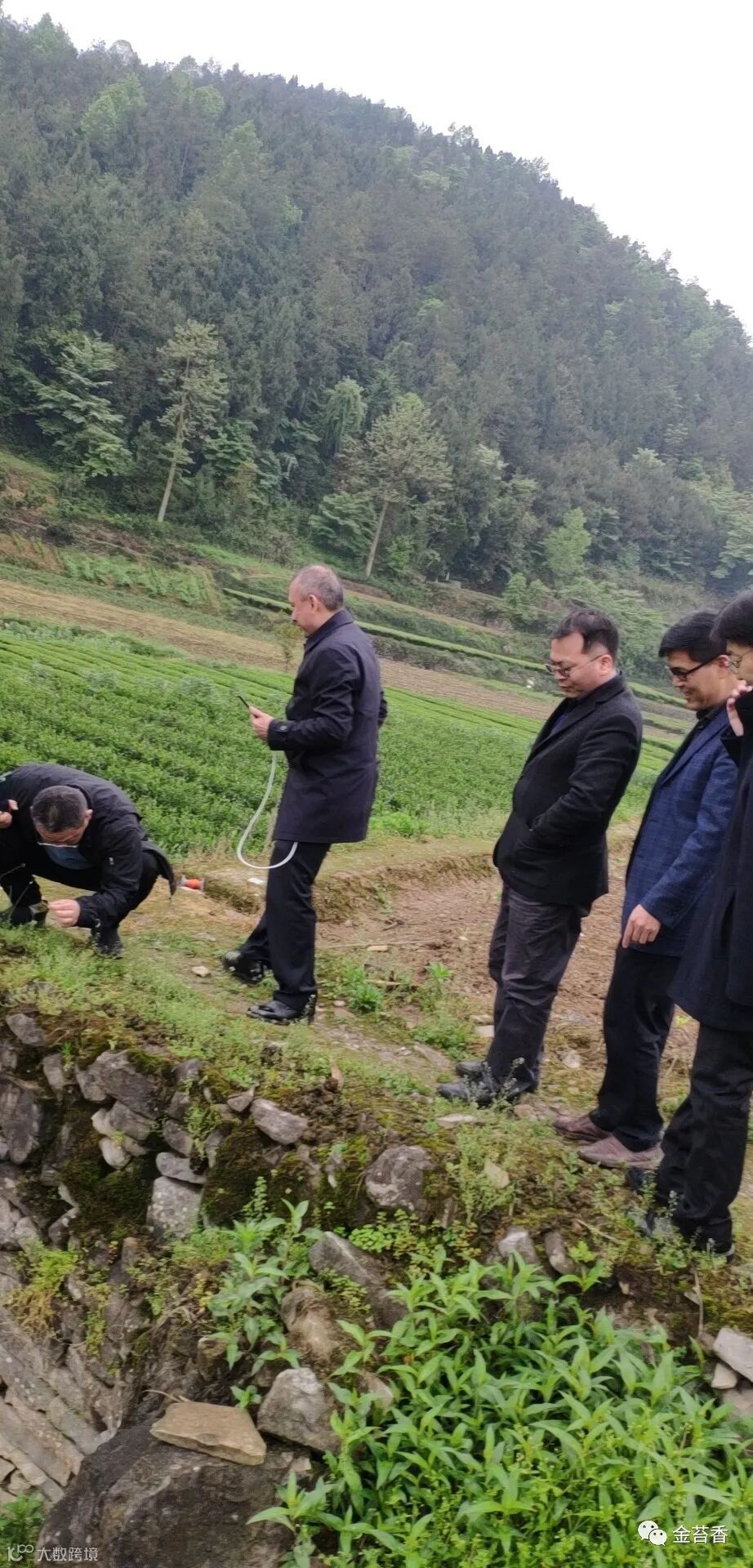 蹇秘书长等人在到达帮扶点白果树村后,前往金苔香研茶基地进行指导。