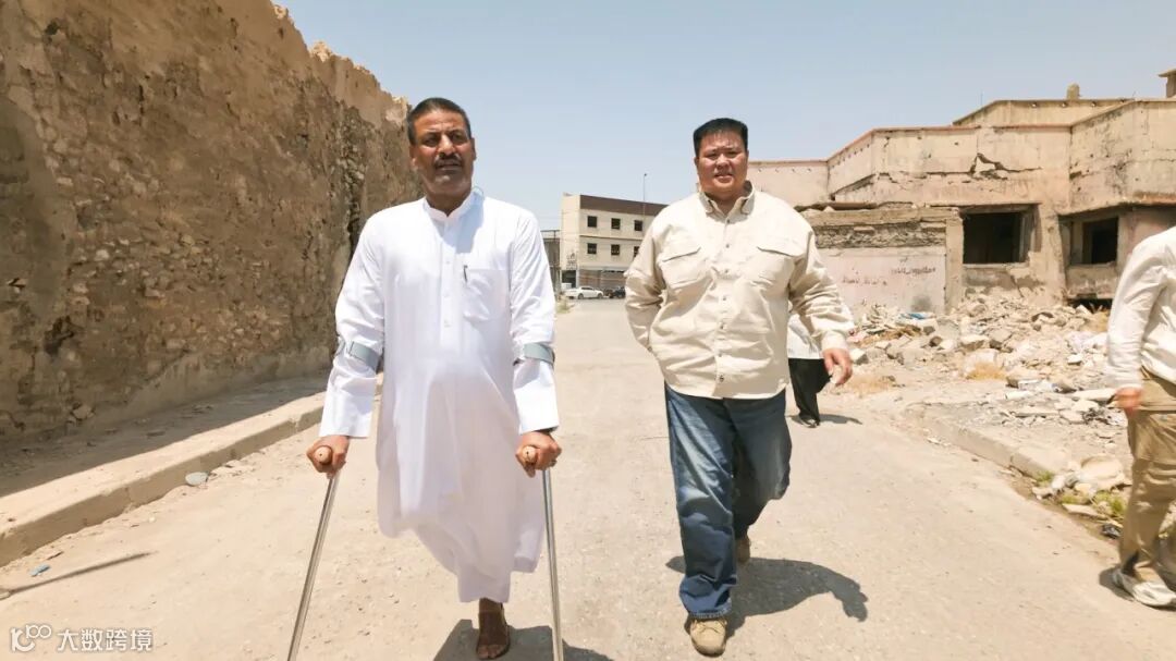 2014年,他在摩苏尔大学遭遇炸弹袭击,失去了一条腿,同行的同事不幸丧生。11年过去了,他的腿中仍残留着弹片,天冷时就会疼痛难忍。