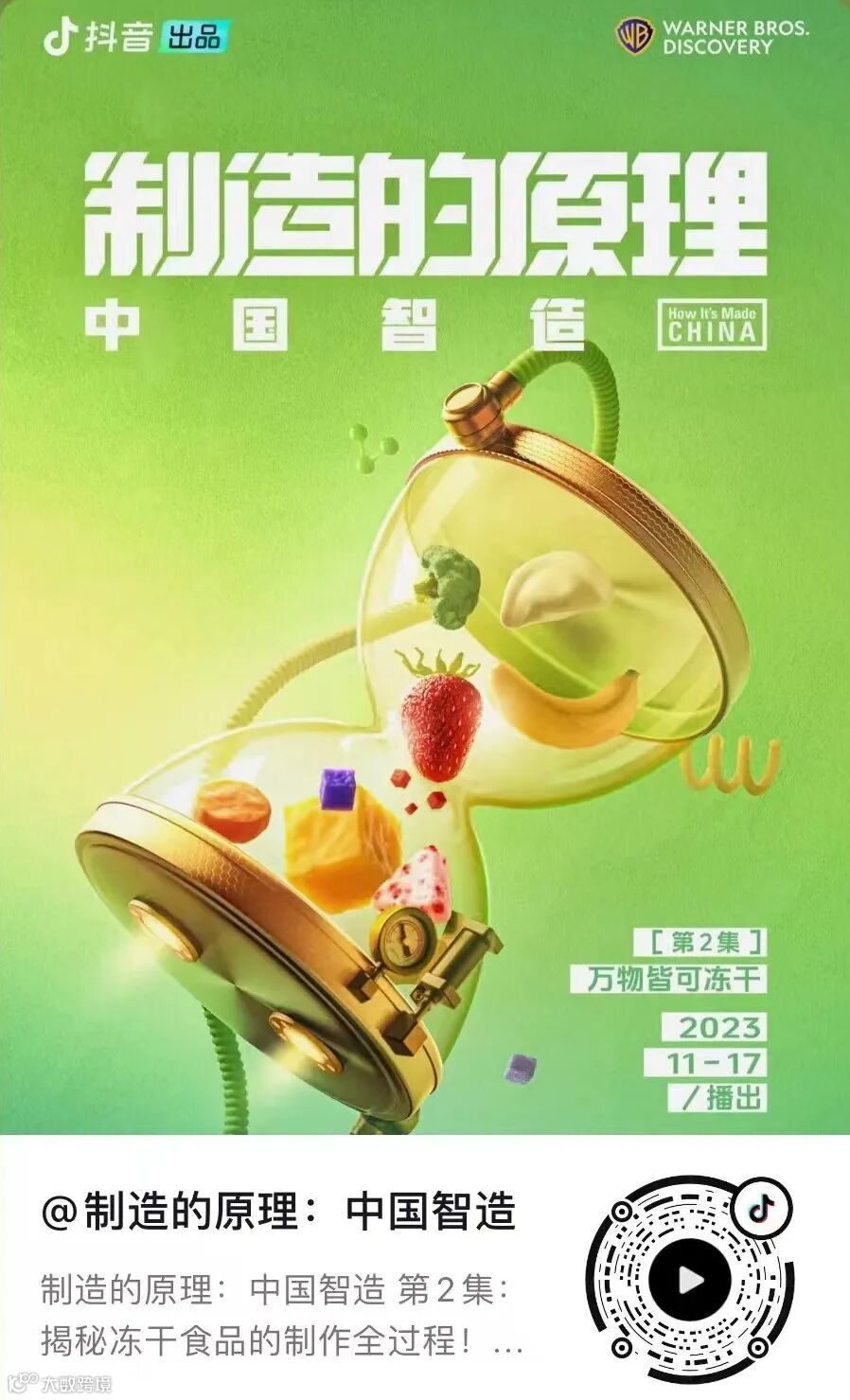 纪录片《制造的原理:中国智造》第二集:万物皆可冻干在抖音准点播出。福建立兴食品股份有限公司实力出镜,为您揭开冻干食品“中国智造”的神秘面纱。