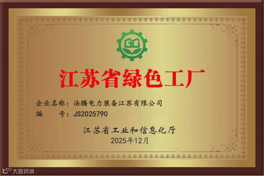 近日,江苏省绿色工厂名单正式公布,法腾电力凭借在绿色生产、低碳创新、数字赋能等领域的卓越实践与突出成果,成功获评「江苏省绿色工厂」荣誉称号!这一认证是对企业坚守绿色低碳发展理念、深耕智能制造的权威肯定,更是对法腾电力以科技赋能碳中和进程的高度认可。