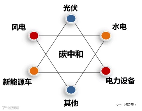 光伏、新能源车、电力设备、水电、风电。