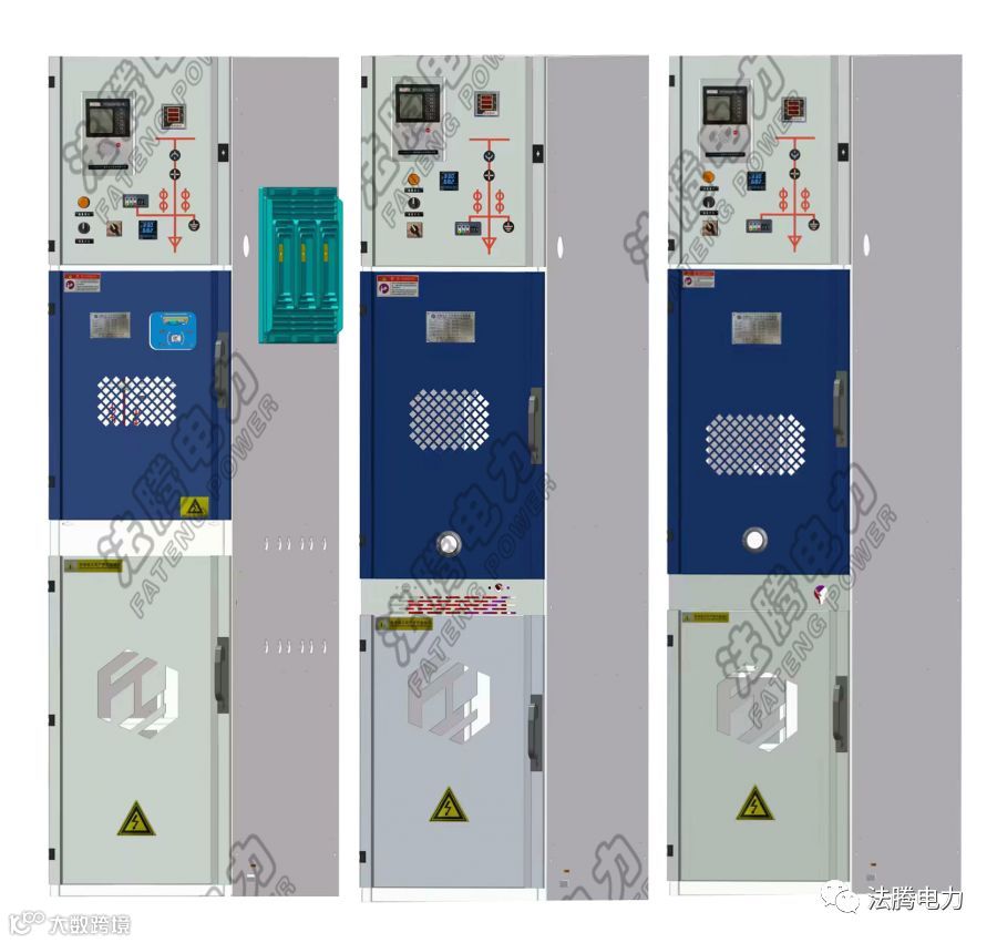 开关柜内配置是法腾电力公司生产的免维护型真空断路器或其他类似产品。开关柜采用模块化设计,断路器可抽出式,便于批量生产和检修。成套设备可满足中国电网对中压开关之要求,并适合“五防”及可关门实现安全操作、全隔离、全工况的特殊性能要求。