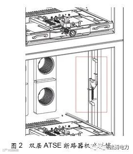 双层开关柜是一台开关柜配有两个真空断路器。这样只需要两台开关柜就可以实现一组ATSE电缆进、出方案,一台开关柜安装两个断路器用于市电电源进线和柴油机应急电源进线,标准的两个VCB,具有小于100毫秒的并行时间,快速触点转换时间40-100毫秒。而另一台柜配两个电压互感器手车,用于电压信号和提供操作电源。断路器的储能和合闸就是V-V连接的电压互感器提供的控制电源完成,电压互感器容量 2000VA。跳闸采用电容器跳闸装置,保证失电情况下跳闸,电压互感器柜同时用于关键负载的出线连接。