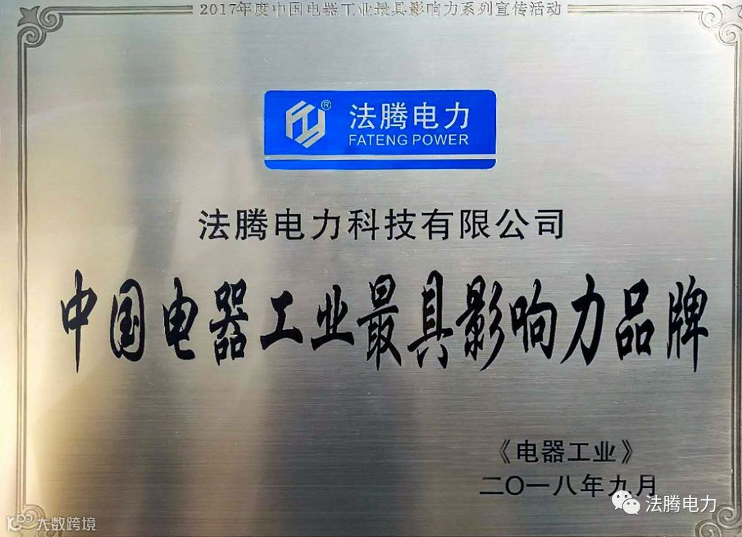 由中国电器工业行业协会携刊《电器工业》主办的”2018年度中国电器工业最具影响力“系列评选活动中,法腾电力经过企业自身的品牌管理和品牌影响力,得到了上海市经信委(品牌建设)和上海电器行业协会的认可及推荐,经过组委会专家评审和认定,法腾电力荣获“中国电器工业最具影响力品牌”殊荣。