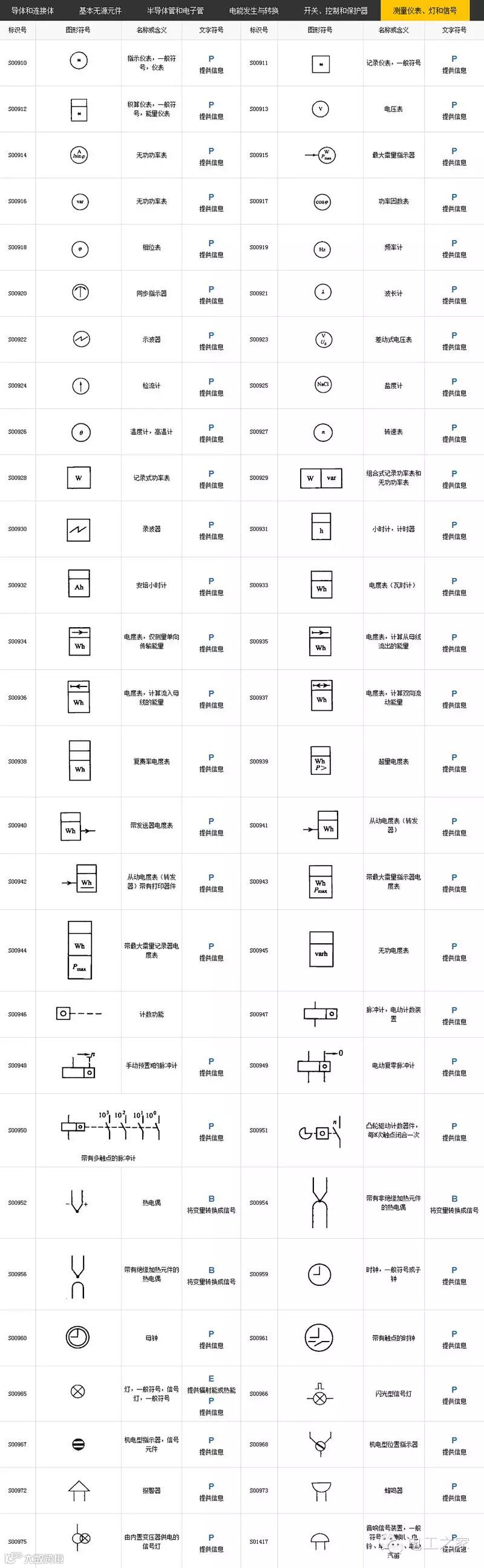 法腾电力电气工程符号大全 电气图形符号和代号对照图表