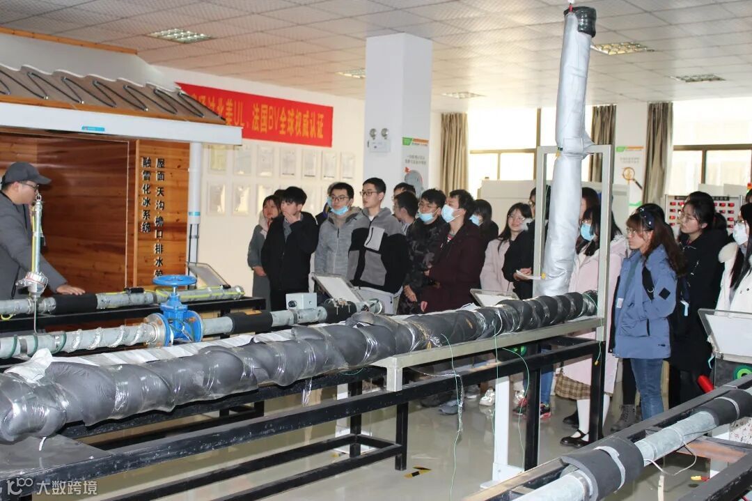 在研发试验室,工作人员张工详细讲解了各种电热产品在研发试验过程的检测运用,以及环瑞公司各个产品所获得的不同国家和地区的相关资质认证情况。自限温、恒功率、发热电缆、发热地席等系列试验操作,让同学们大开眼界,收获颇丰。