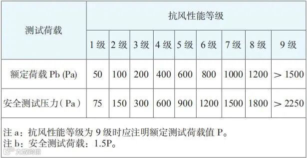 表 1 外遮阳金属百叶帘抗风压性能分级