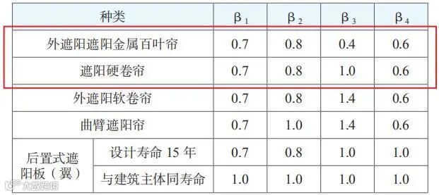 表 4 遮阳装置风荷载修正系数