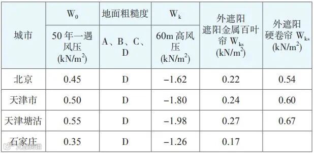 参考列出北京、天津、石家庄三地(D 类)风荷载标准值见表 3: