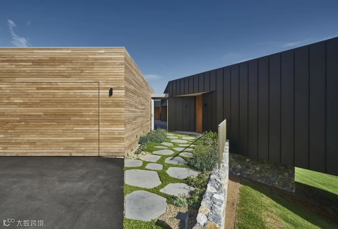 这栋澳大利亚别墅背靠海边,独立车库被水平木板覆盖,所用的材料与整个车库的材料相同,朴实的木板显得别墅更加简约。