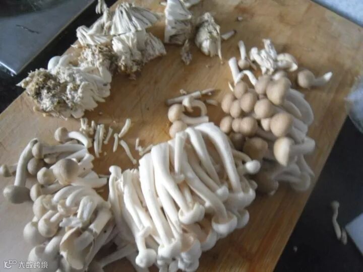 把白玉菇、蟹味菇去掉根蒂