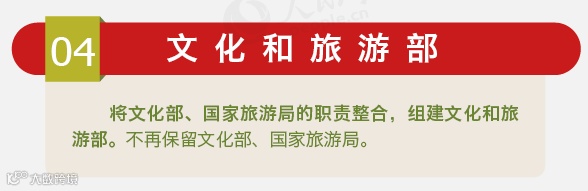 将文化部、国家旅游局的职责整合,组建文化和旅游部,作为国务院组成部门。不再保留文化部、国家旅游局。