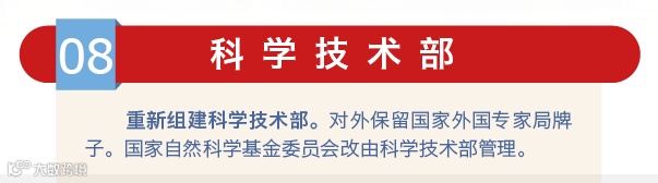 将科学技术部、国家外国专家局的职责整合,重新组建科学技术部,作为国务院组成部门。科学技术部对外保留国家外国专家局牌子。