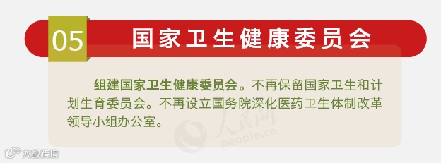 将国家卫生和计划生育委员会、国务院深化医药卫生体制改革领导小组办公室、全国老龄工作委员会办公室的职责,工业和信息化部的牵头《烟草控制框架公约》履约工作职责,国家安全生产监督管理总局的职业安全健康监督管理职责整合,组建国家卫生健康委员会,作为国务院组成部门。