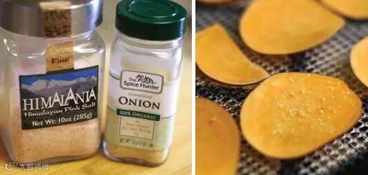 步骤三:在烤盘上涂上一层油,将红薯片放在烤盘上,后用微波炉或烤箱烤制成熟即可。