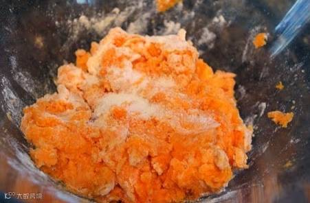 步骤一:将清水冲洗干净的红素去皮后蒸熟,捣成红薯泥。