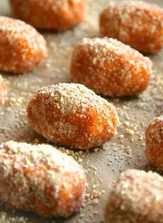 步骤三:做好的丸子撒上椰蓉,入油锅炸熟即可!