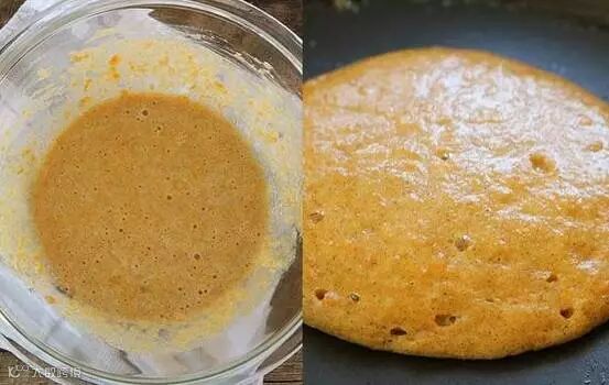 步骤三:锅底涂上油,将搅拌均匀的面糊放入平底锅。