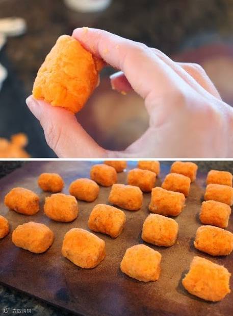 步骤二:用手把红薯蓉面团揉成小丸子备用。