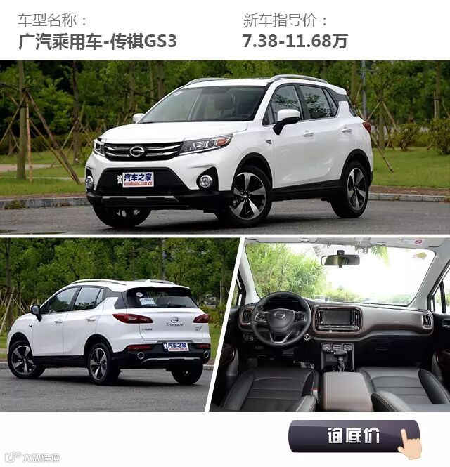广汽传祺这两年在SUV市场上发力挺猛,在中型SUV市场上相继推出了GS8、GS7,加上紧凑型SUV市场上的GS4、GS5,就差个小型SUV了。在此次成都车展上,广汽传祺GS3正式上市了,这款车共有1.5L和1.3T两种排量共8款车型,售价也非常亲民。