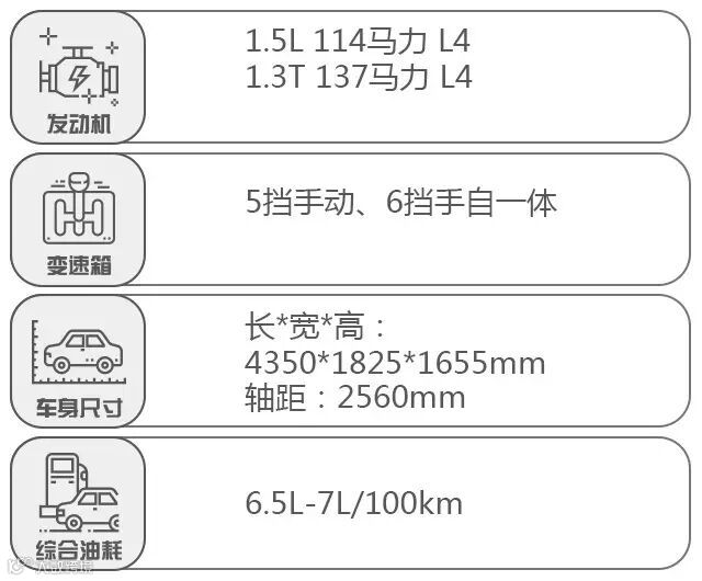 动力方面,新车提供1.5L(150N)和1.3T(200T)两种发动机,最大功率分别为114和137马力,峰值扭矩分别为150和202牛·米。传动方面,两款发动机均匹配爱信6速手自一体变速箱,1.5L车型还提供手动变速箱。