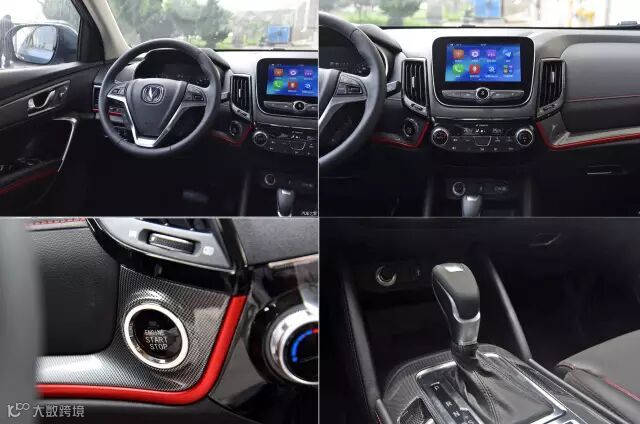 长安CS55的内饰风格绝对算的上是该车的一个非常亮眼的特点了,整体走的是精致化路线,空调出风口和中控区域布局颇具设计感,配合中控台两侧的红色饰条,显得十分个性。与此同时,新车的座椅也采用了红黑配色,满足了年轻人对于运动感的喜好。