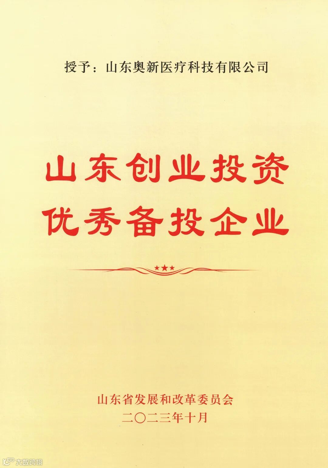 近日,为充分发挥创业投资在支持实体经济特别是支持科技型企业发展中的作用,营造投资山东的良好氛围,由省发展改革委、济南市政府和招商银行总行联合主办了“2023创投基金齐鲁行”活动,这是我省首次举办全省范围大型股权投资项目考察活动,也是一次规模大、层次高的创投机构盛会。本次活动选出了2023年山东省“创业投资明星备投企业名单”,山东奥新医疗科技有限公司成功入选。