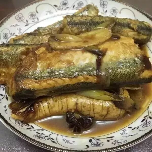 利用锅中底油,放入姜、蒜、花椒和八角炒香,再放入葱白炒出香味,将鱼段和鱼籽摆上,加上酱油和米醋,加入没过鱼的开水;大火烧开后,转中火炖制,煮至十分钟左右就行了。