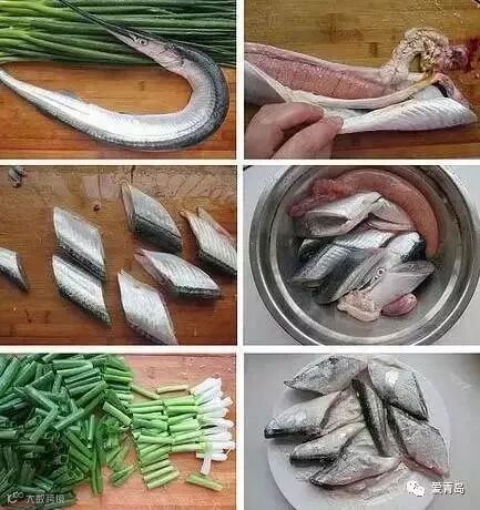 用剪刀把针良鱼剪成寸段,把鱼血洗干净,尤其是贴骨筋膜也要去除,否则腥气重。