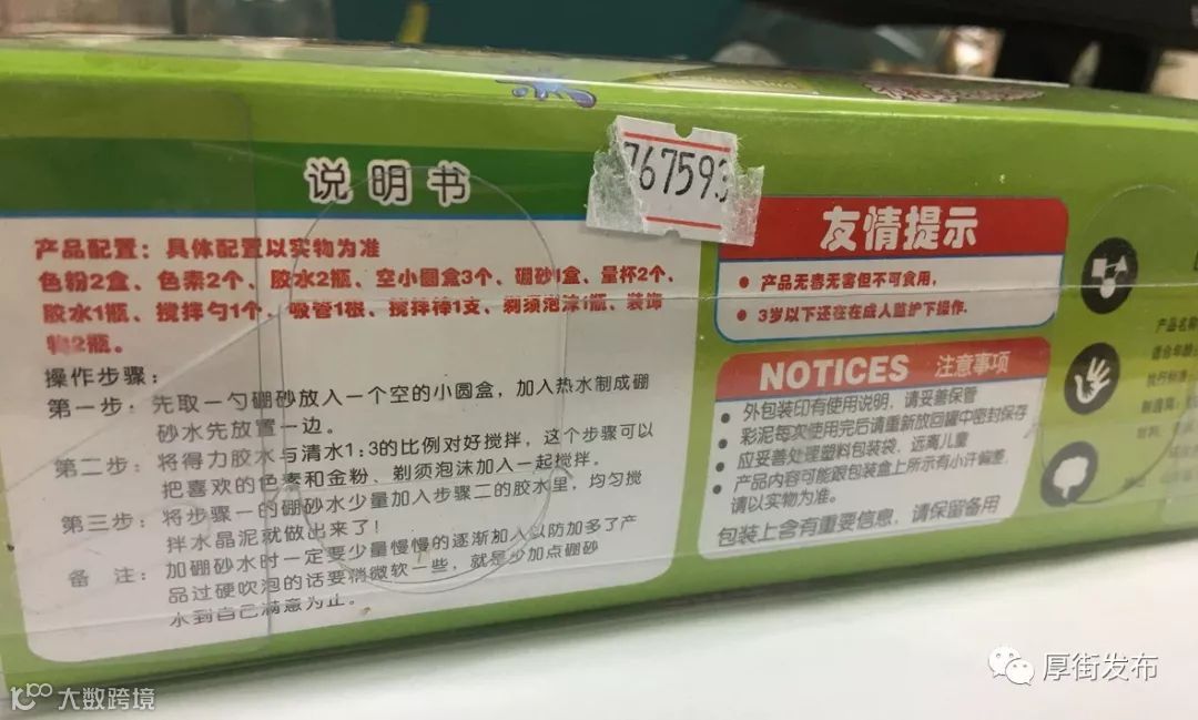 而类似的事例也发生在东莞,东莞厚街镇方女士投诉称,近日,她去学校接女儿放学,女儿吵着要买“史莱姆水晶泥”,她就带女儿去学校附近的文具店里买。