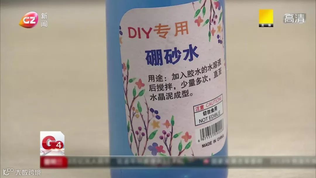 她到了店里看到,女儿说的“史莱姆水晶泥”像果冻一样,捏起来非常有弹性,但其材料中有“硼砂水”。“我上网查过,硼砂有毒,小孩子用它做手工非常不安全。”方女士称。