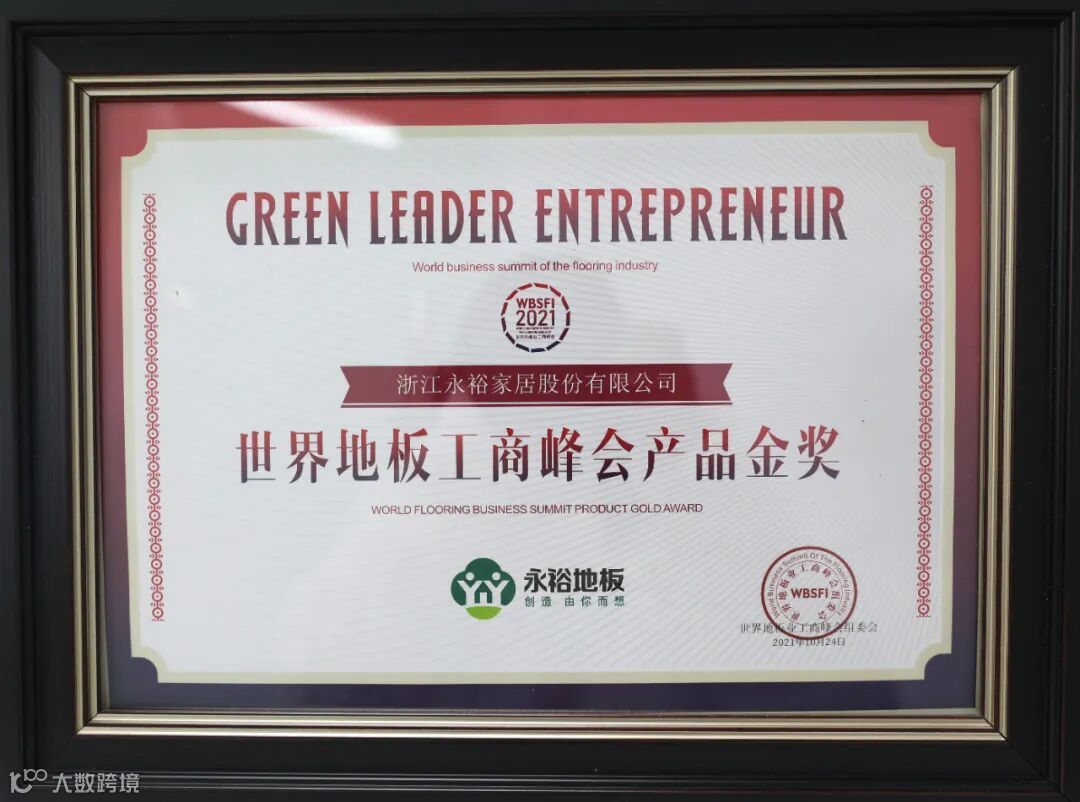 世界地板业工商峰会由中国林产工业协会主办,世界地板业工商峰会组委会承办,得到了大自然家居、世友木业、久盛地板、富林家居等企业鼎力协助,行业主管领导、全国地板企业家、全国地方地板协会负责人、地板配套产品企业家、重点地板园区与生产集聚地管理部门负责人,林业院校科研带头人、国家碳汇交易机构负责人、 国家环保及市场监管系统领导等数百人出席。浙江永裕家居股份有限公司经过同行认可,组委会审批以及行业认证,峰会给予颁发永裕“世界地板业工商峰会SPC地板十大品牌”以及“世界地板工商峰会产品金奖”。