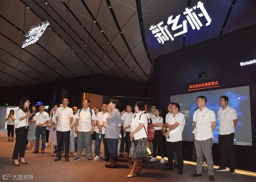 随后参观了阿里巴巴展厅,以翔实的数据、直观的图文、影像,呈现了阿里巴巴从初创时期到美国上市,十几年快速发展的历程,展示了其在电商零售、物流仓储、智慧城市、阿里云等最新成果。