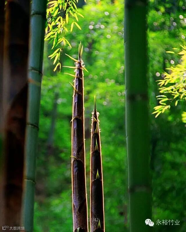 当春风还没有融尽残冬的余寒,新笋就悄悄在地下萌发了,一场春雨过后,竹笋 破土而出,直指云天,所谓“清明一尺,谷雨一丈”,便是对她青春活力和勃勃生机的写照。