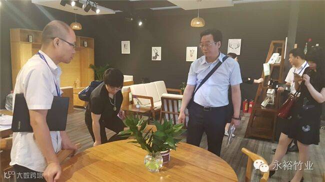 “碳化过的竹子不会长虫,摸起来非常有质感,这正是我一直寻找的产品。”来自安徽合肥的一位商客按捺不住内心的激动,抚摸着全竹餐桌久久不肯松手。