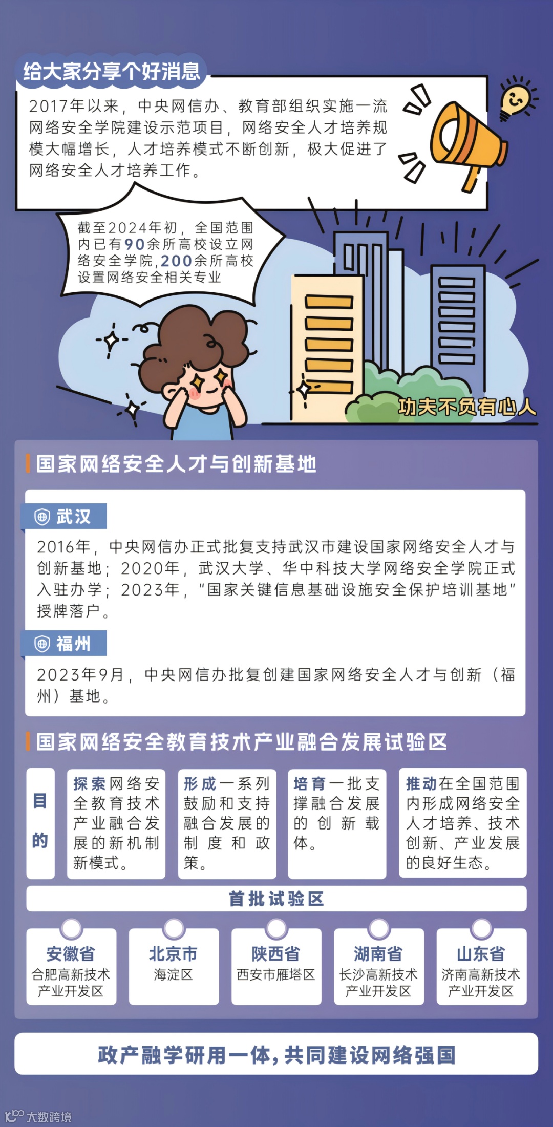 自2014年以来,我国连续举办国家网络安全宣传周,以通俗易懂的方式宣传网络安全理念、普及网络安全知识、推广网络安全技能,让“网络安全为人民,网络安全靠人民”的理念深入人心。