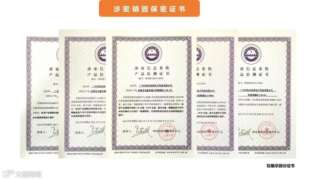 在传统的涉密销毁设备领域,科密品牌早在2016年开始涉足涉密行业,2020年率先成立涉密销毁设备部门,开始布局涉密销毁设备行业;时至今日,依托科密品牌30年的品牌底蕴,先后推出近30款带国家保密测评中心证书的涉密销毁产品,其中涵盖了纸介质,光介质,磁介质,半导体芯片,特种材料销毁等涉密载体销毁设备。