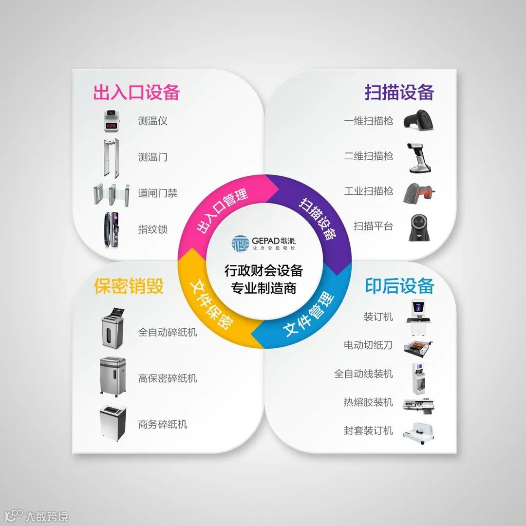 歌派,行政财会设备专业制造商,以“文档管理”为核心,打造文档管理每个环节的产品服务能力并建立系统的解决方案服务优势,即,从文档的裁切--扫描录入--文档装订--文档保管--文档销毁提供专业的全案解决方案服务。