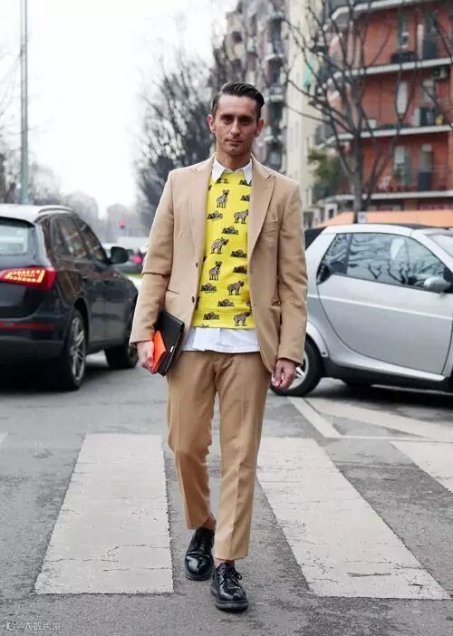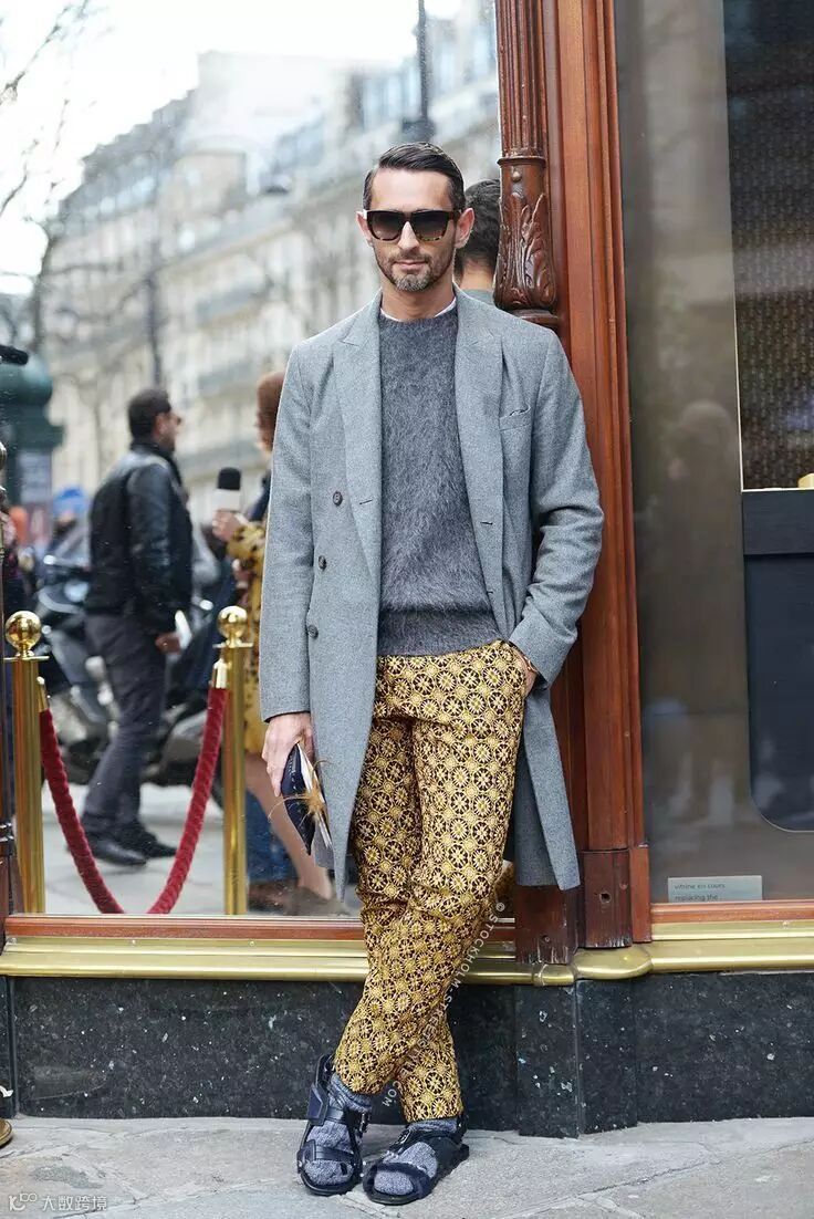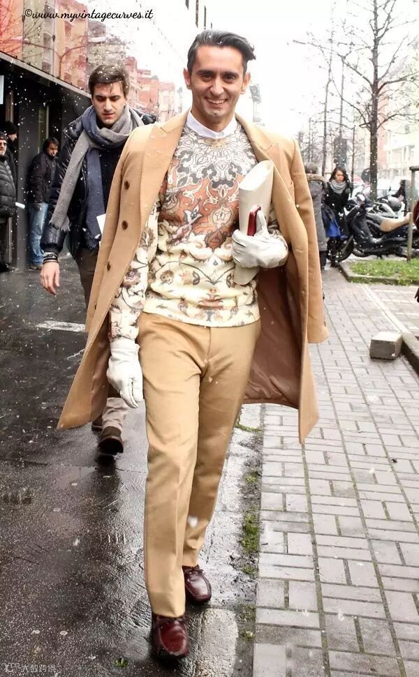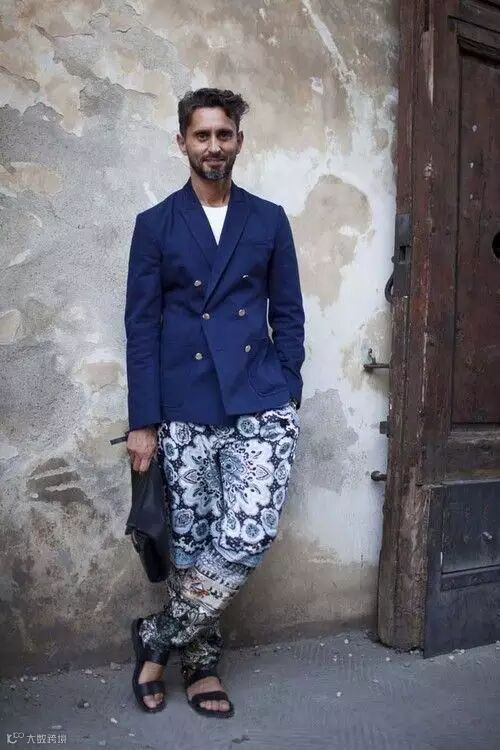 在时尚界能算得上是最会搭配的帅大叔之一,在意大利当时尚编辑,他以大胆的撞色穿搭吸引了众多媒体关注,同时他还非常喜欢印花的单品,尤其他的花裤子也是作为他个人的象征之一,因此粉丝们还封他为“印花之王”。