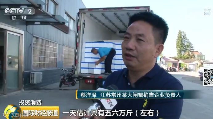 江苏常州某大闸蟹销售企业负责人 蔡洋泽:往年像这个时候,一天估计只有五六万斤左右,中秋前后这几天每天通过线上线下,一般保持在八九万斤左右。