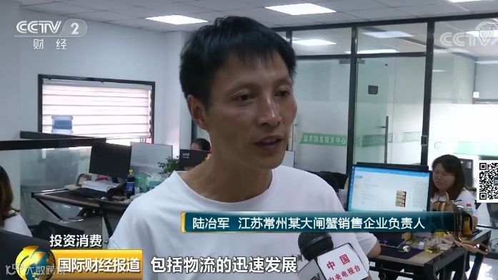 江苏常州某大闸蟹销售企业负责人 陆冶军:经过这两年电商平台不断推动,包括物流的迅速发展,已经把鲜活的大闸蟹送到三四线城市老百姓的手中,让他们在这中间省去了中间商的差价。