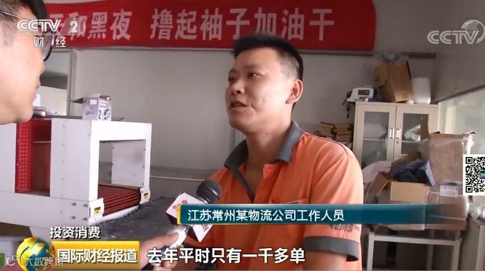江苏常州某物流公司工作人员:去年平时只有一千多单,今年一天都有三千多单左右。下午发货,第二天上午就能到客户手里面。