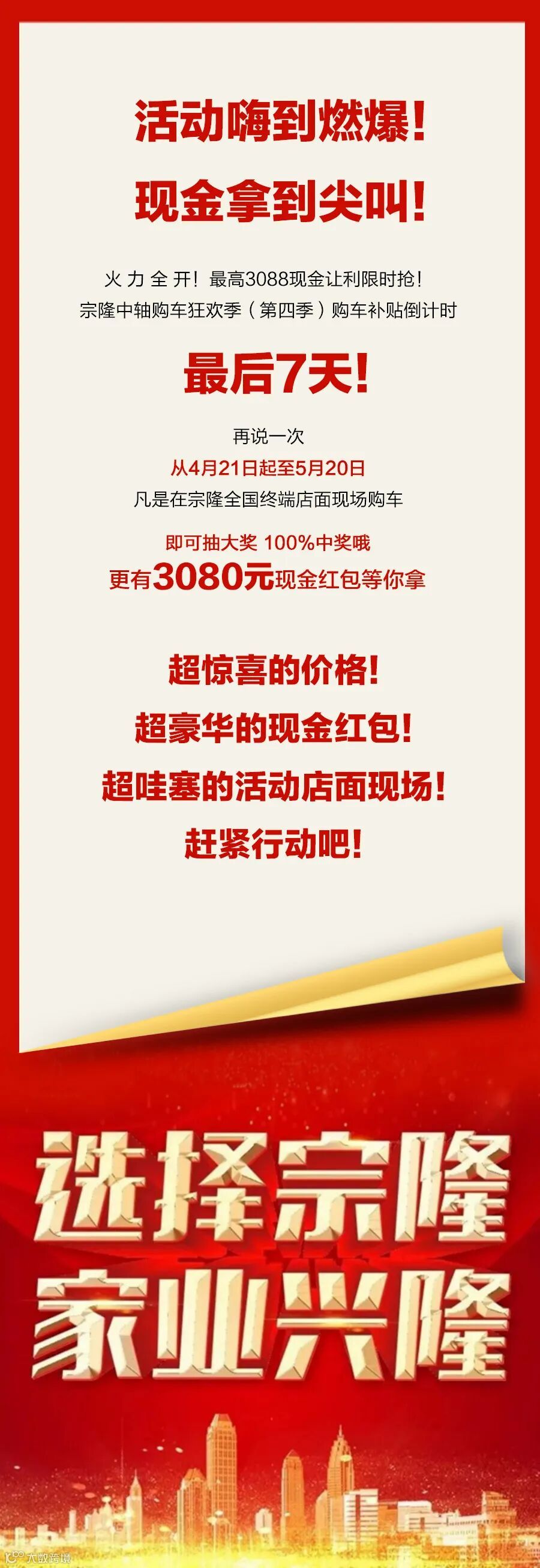 【倒计时7天】宗隆购车狂欢季活动(第四季),最高3088现金限时抢!