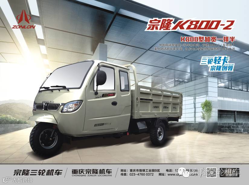 中国高端驾驶室三轮车的典范,豪华舒适的驾乘环境,让你充分享受轻松惬意的工作与生活,三轮轻卡,宗隆创领。