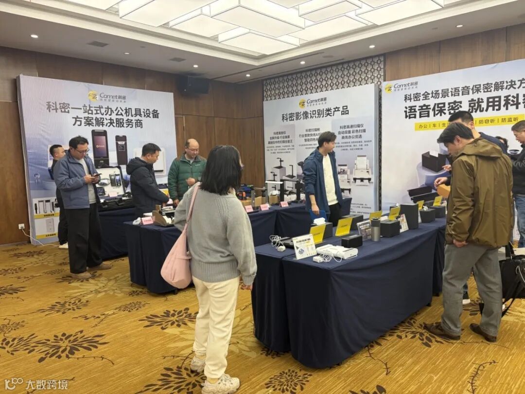 科密区域经理徐亚飞详细介绍了“声盾”系列产品。在会议室、洽谈室、移动座驾等声音泄密高风险场景,科密自主研发的超声波干扰技术,能有效阻断非法拾音,让窃密设备“录而无获”。从桌面式到便携式,从办公用到车载用,科密已构建起业内最完整的产品矩阵,正引领一个全新安全品类的蓬勃发展。