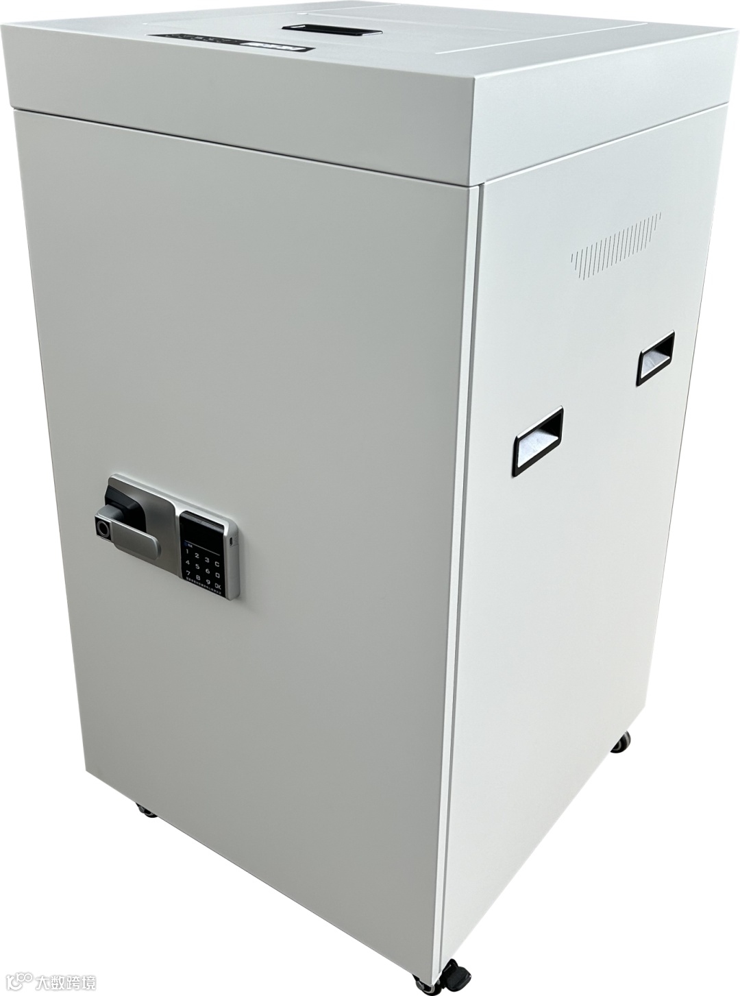 基于此,阳光科密完美融合了高保密与自动碎纸两项王牌功能,并装配已通过国保测安全保密产品认证的歌派指纹密码锁,推出全新的行业领先保密利器——合盖式高保密全自动碎纸机!